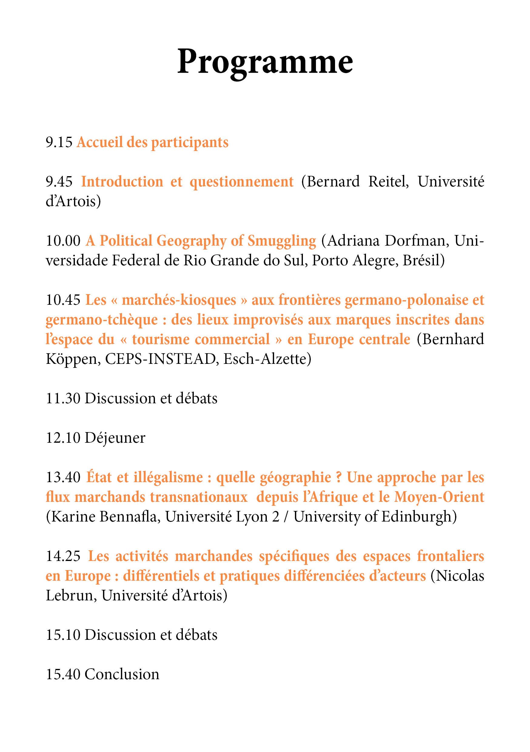 12 novembre à ArrasJournée d'étude : "La frontière traversée, transgression ou opportunité ? Commerce transfrontalier et contrebande dans le monde".
